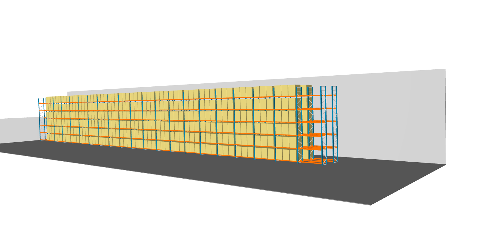 Statikus tároló rendszer a nehéz árukhoz, targoncával kezelhető.